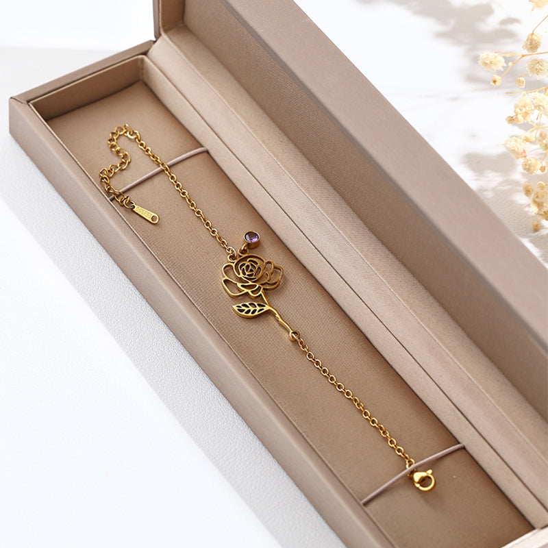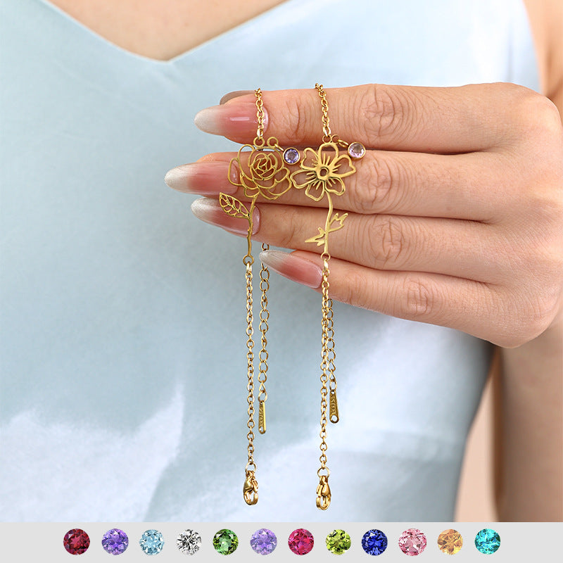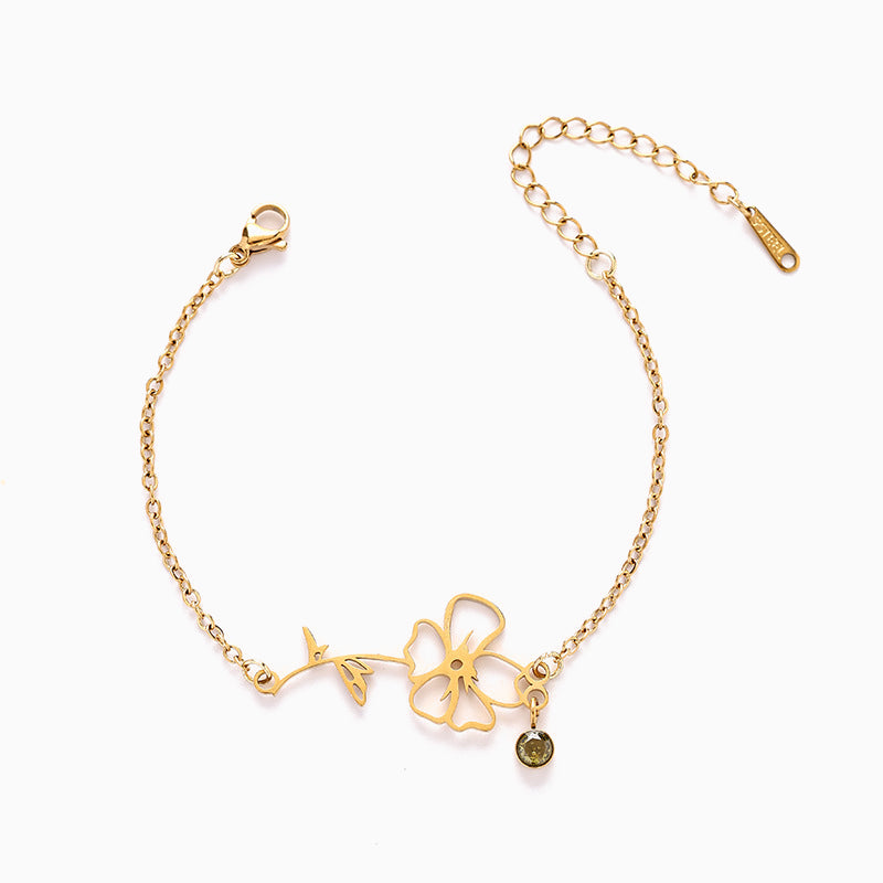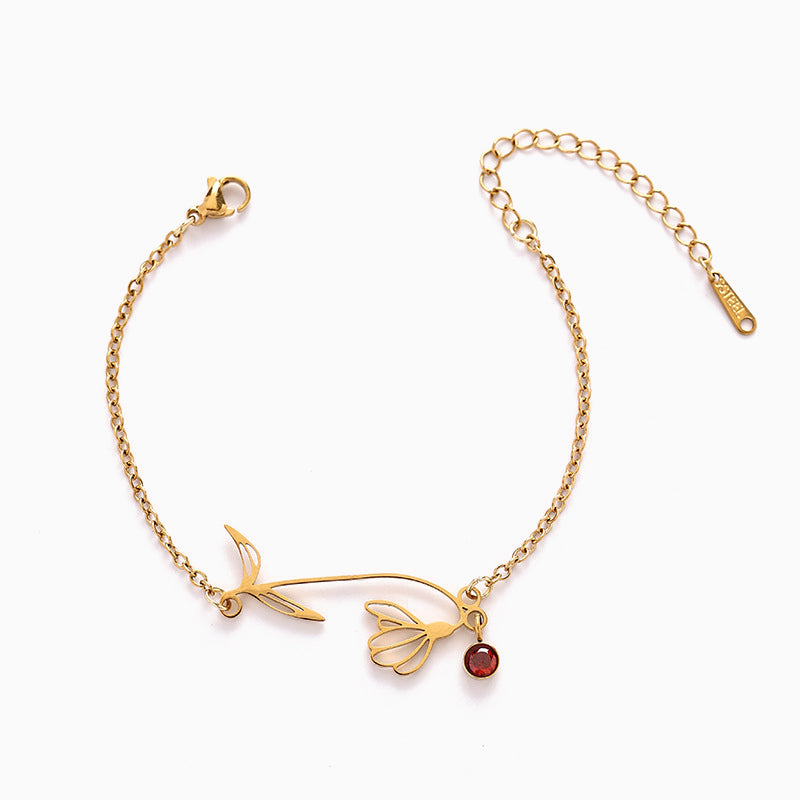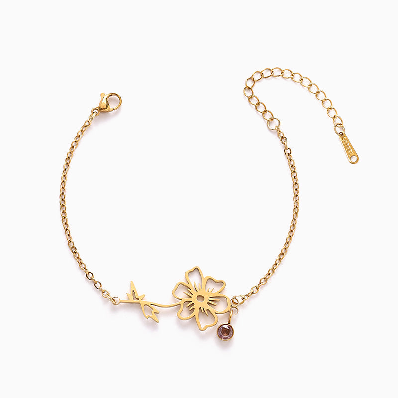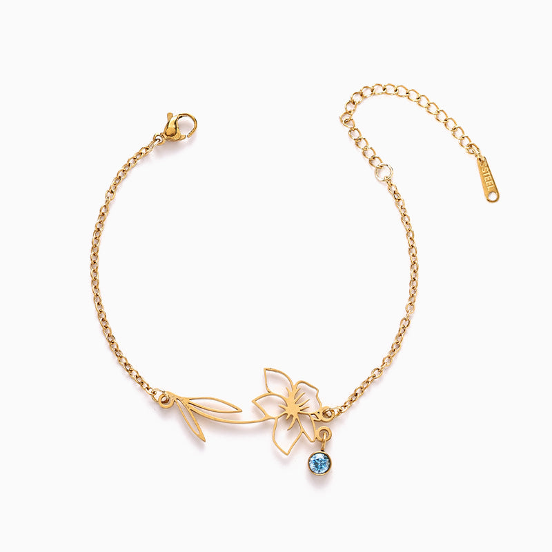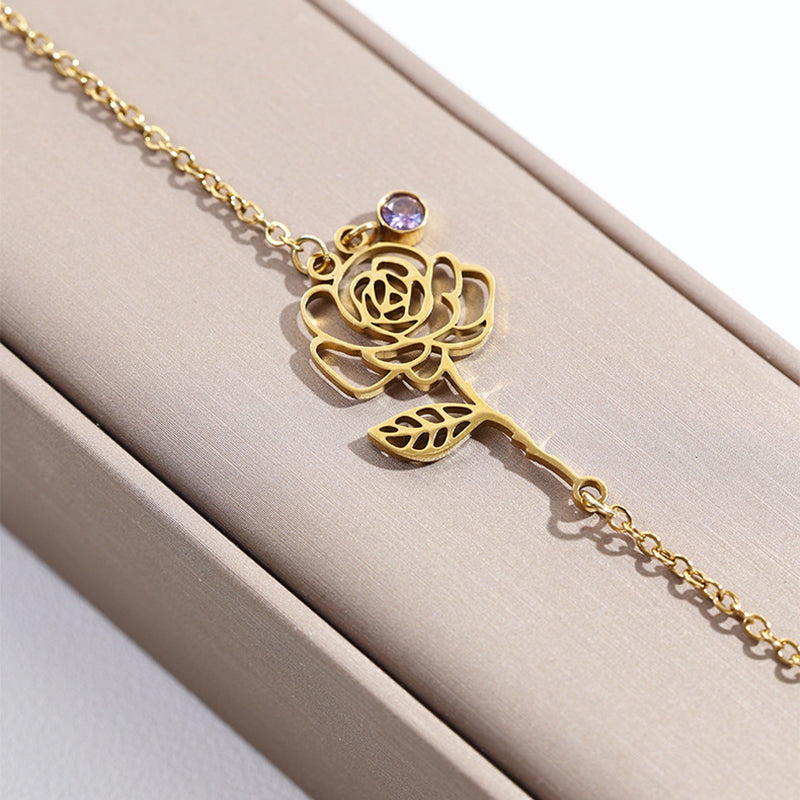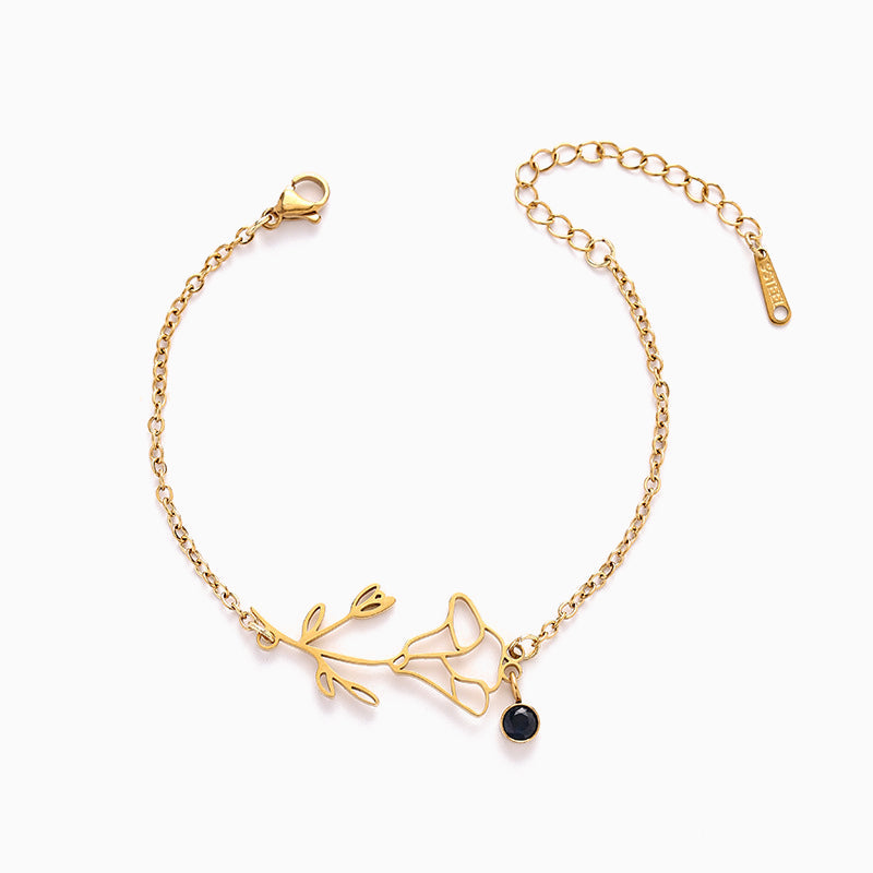• Celebrate a December birthday with timeless elegance and meaning. This delicate bracelet features a sparkling birthstone inspired by December's radiant hues, beautifully framed by a floral motif and accented with dazzling diamond-like stones. The graceful design blends nature's charm with refined luxury, making it a perfect gift for someone born in December—or a thoughtful treat for yourself. Whether worn alone or stacked, it adds a personal and sophisticated touch to any look.