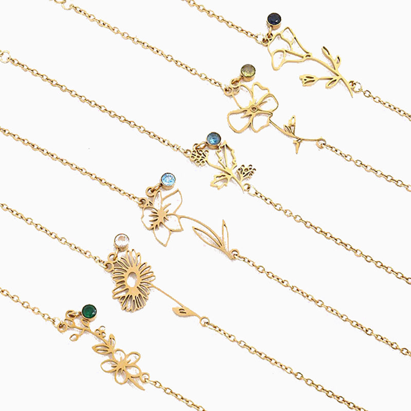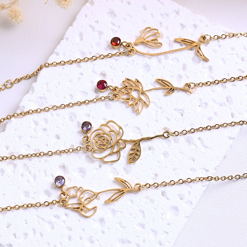 Wearsouvenir December Birthday Flower Birthstone Diamond Vintage Bracelet