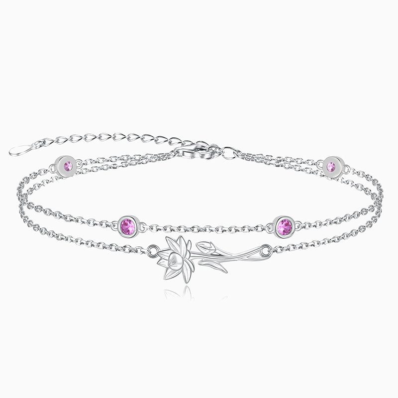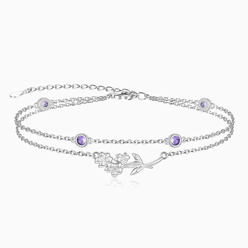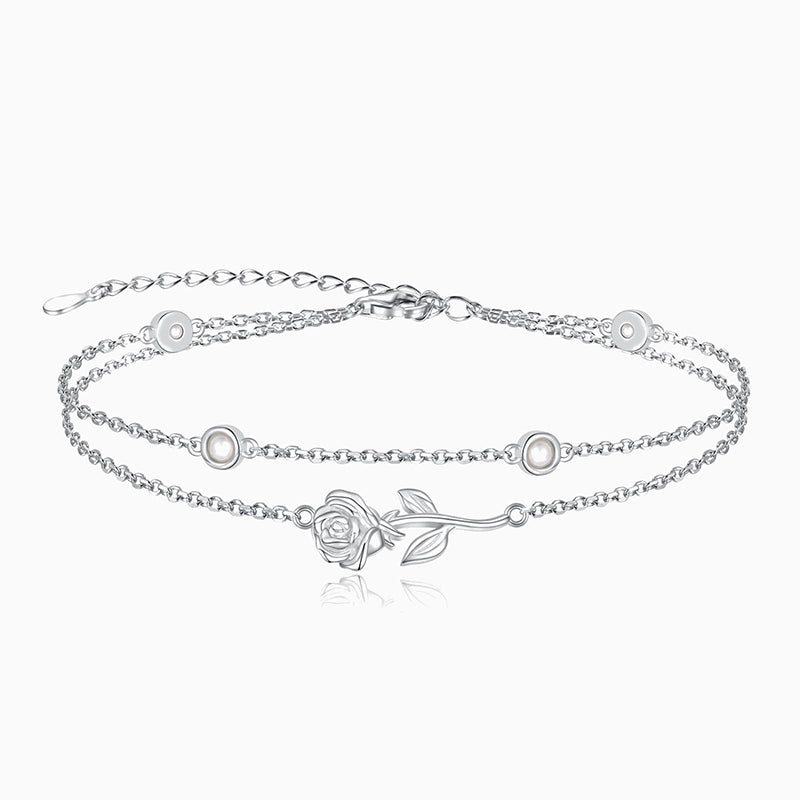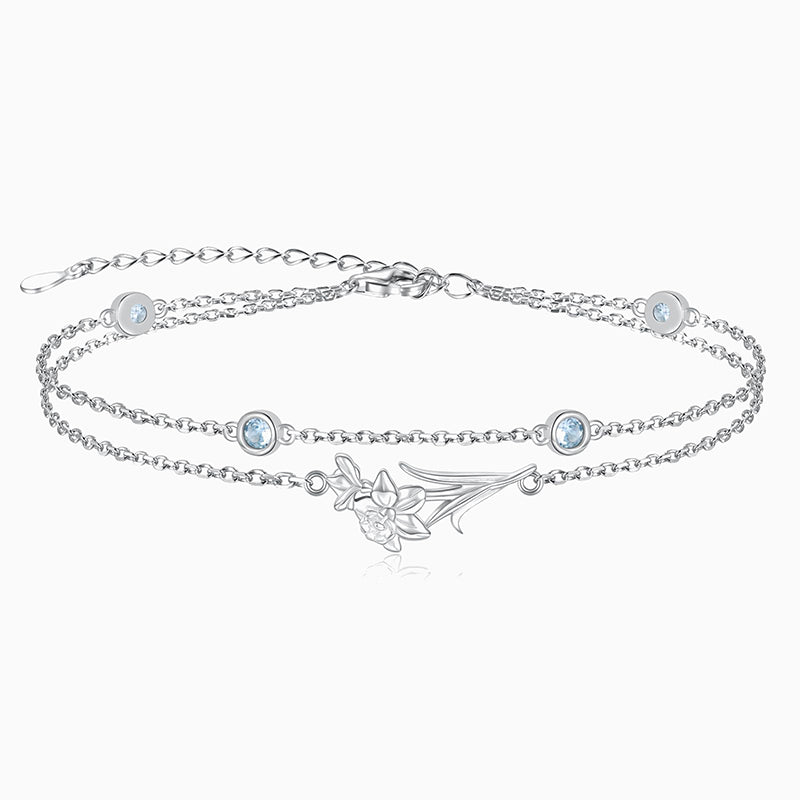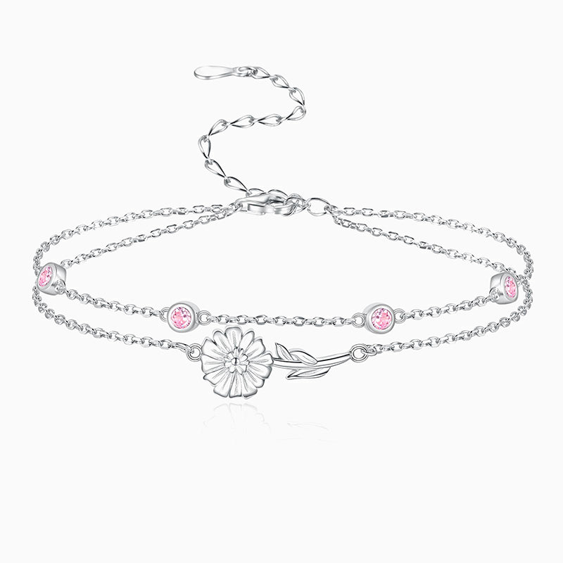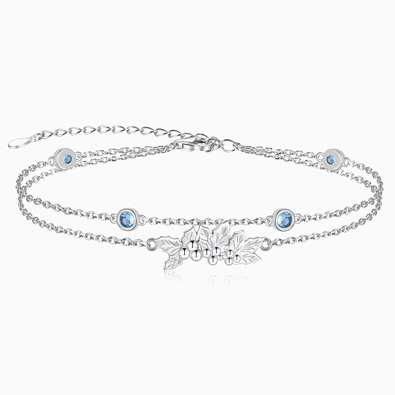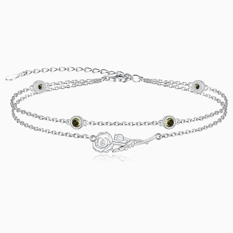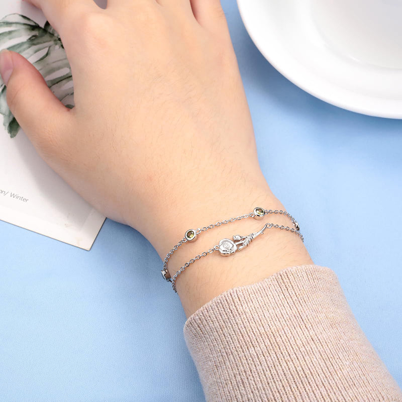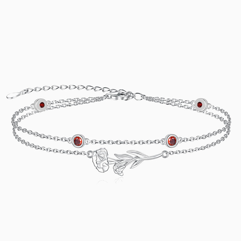 December Birthstone Double Silver Bracelet With Rose Pendant