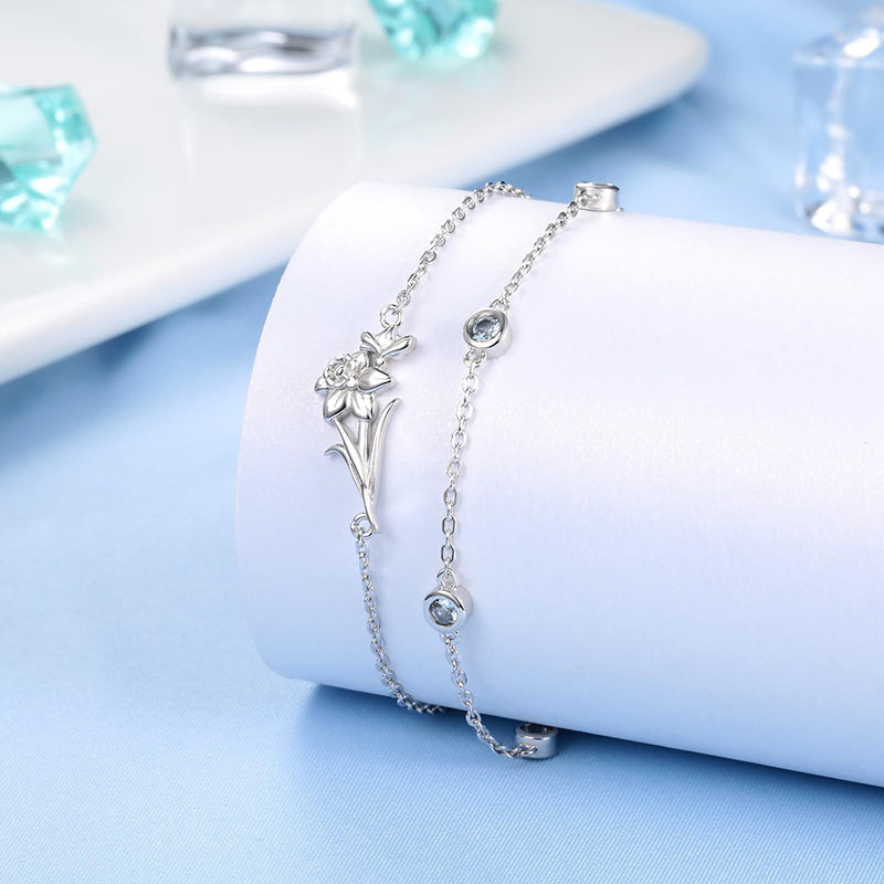 • Elegant and full of meaning, this December Birthstone Double Silver Bracelet features a layered silver chain design paired with a delicate rose pendant—symbolizing love, beauty, and grace. Accented with a serene turquoise or blue zircon, the birthstone of December, this bracelet captures both strength and softness in one timeless piece. Perfect for gifting or adding a touch of romance to your daily look.