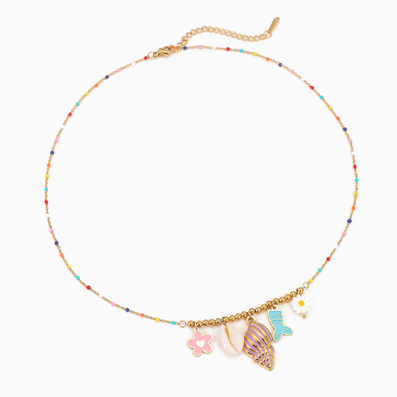 Fashionable Colorful Beaded Chain Conch Pendant Necklace