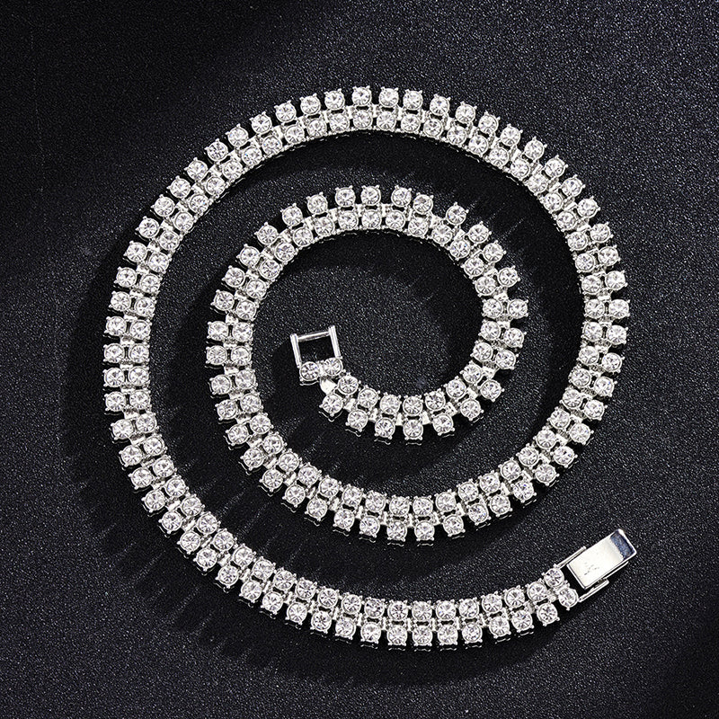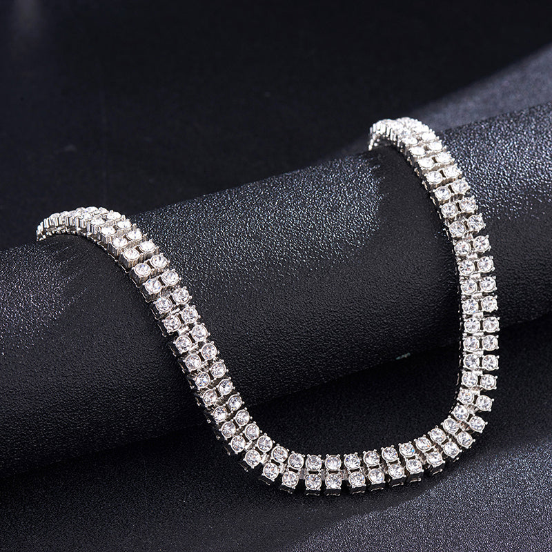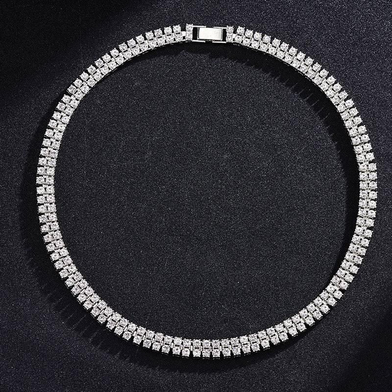 Fashionable Double Row Alloy Pave Diamond Necklace