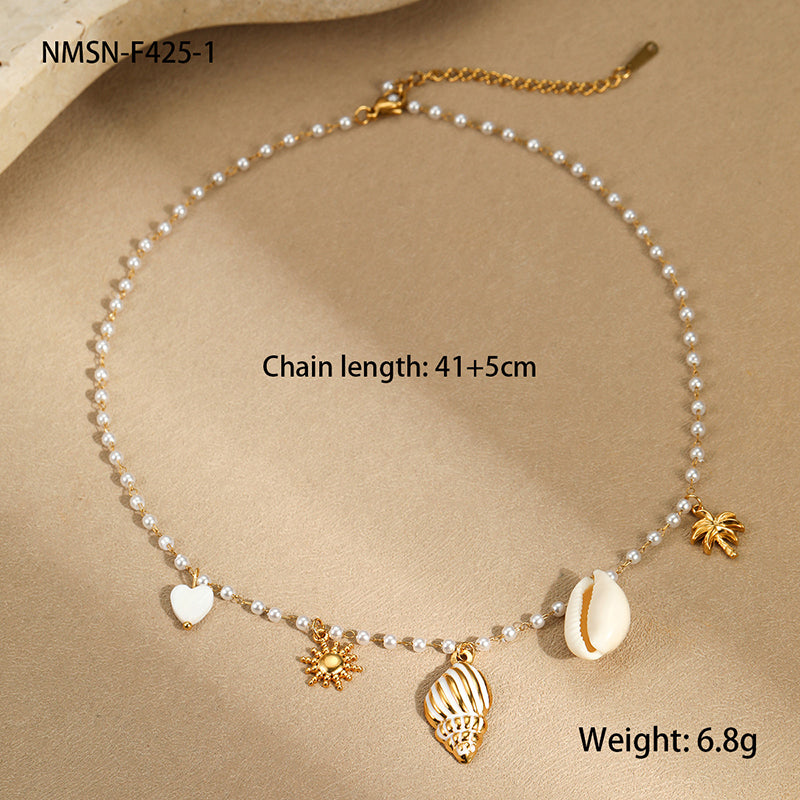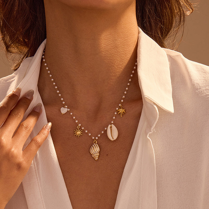 Fashionable Ocean Style Pearl Chain Conch Pendant Necklace