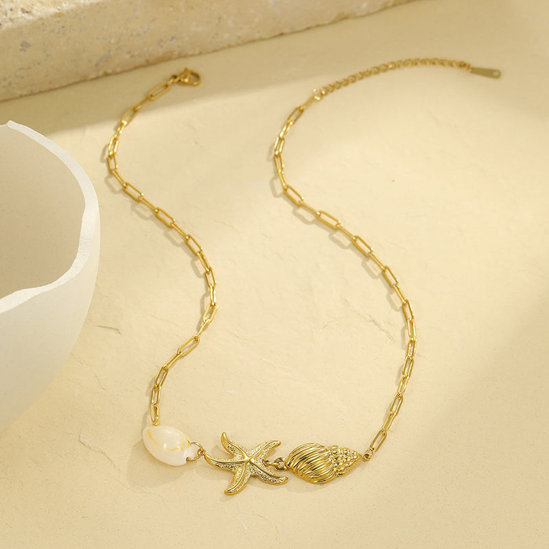 Fashionable Ocean Style Pearl Conch Shell Pendant Necklace