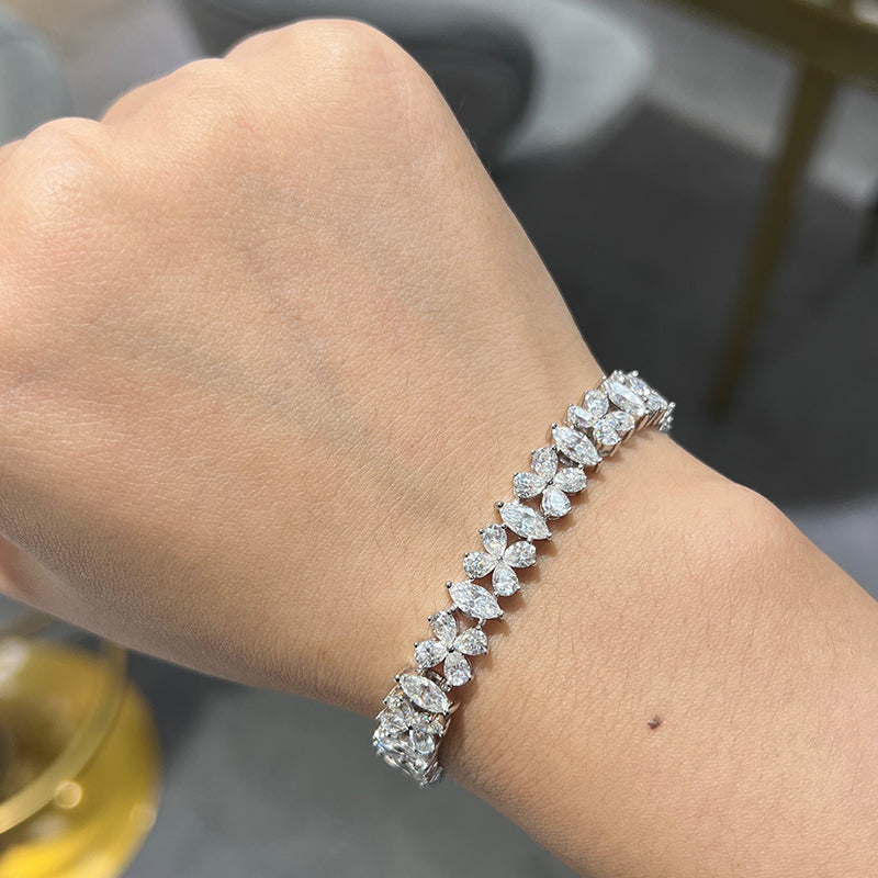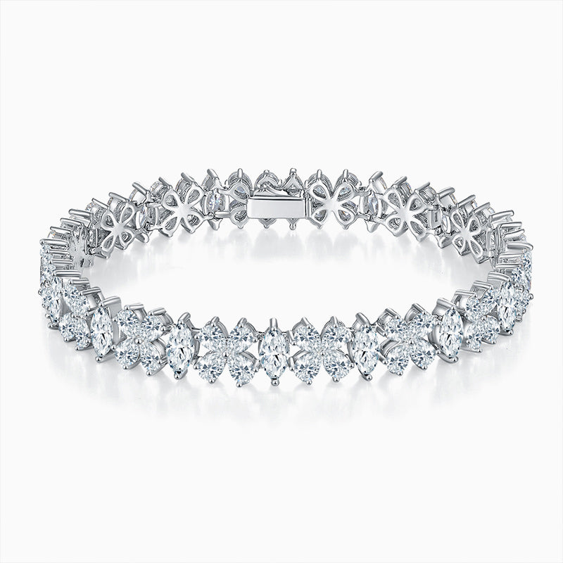 Fashionable Floral Silver Bracelet With Moissanite