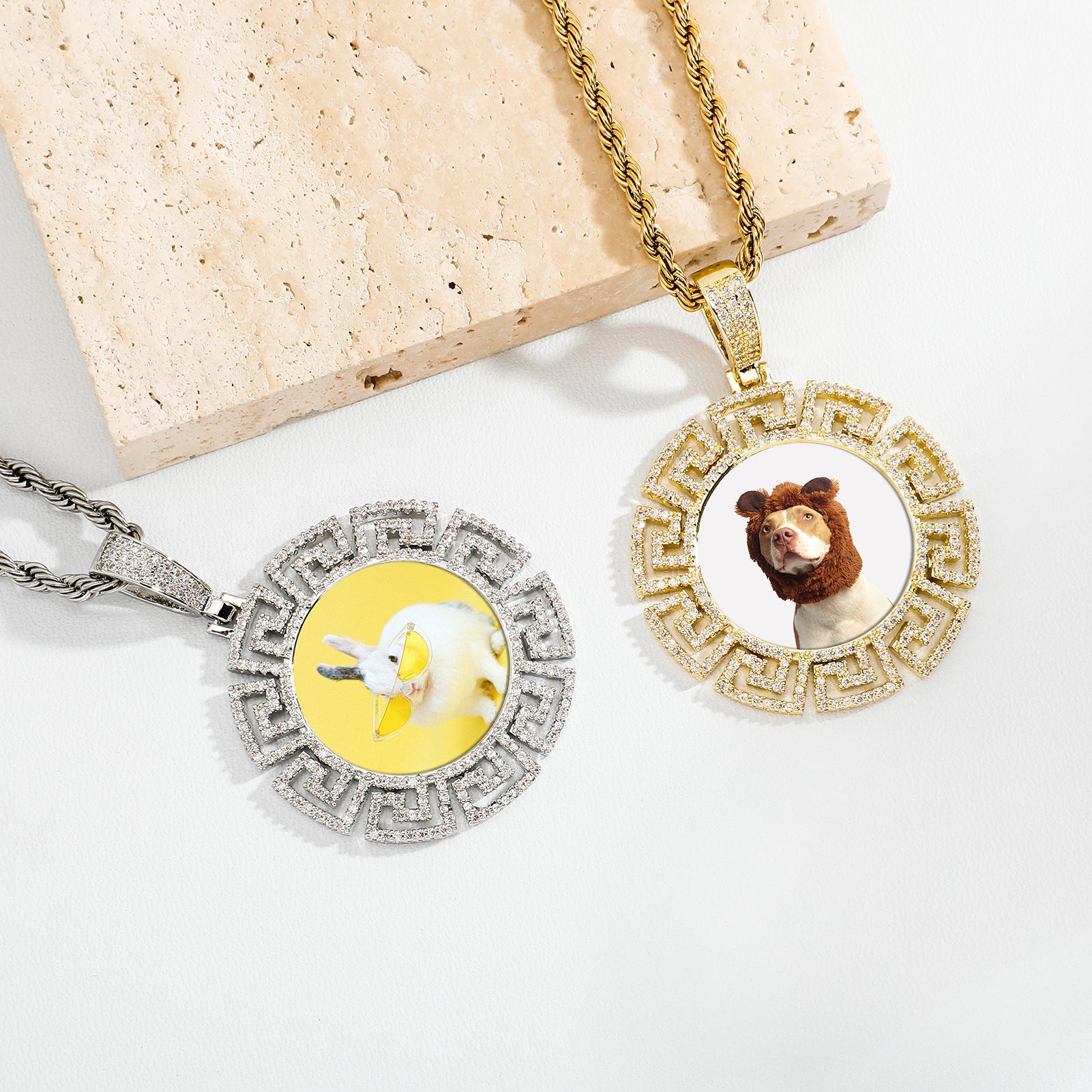 Wearsouvenir Photo Customized Circular Pattern Diamond Frame Necklace