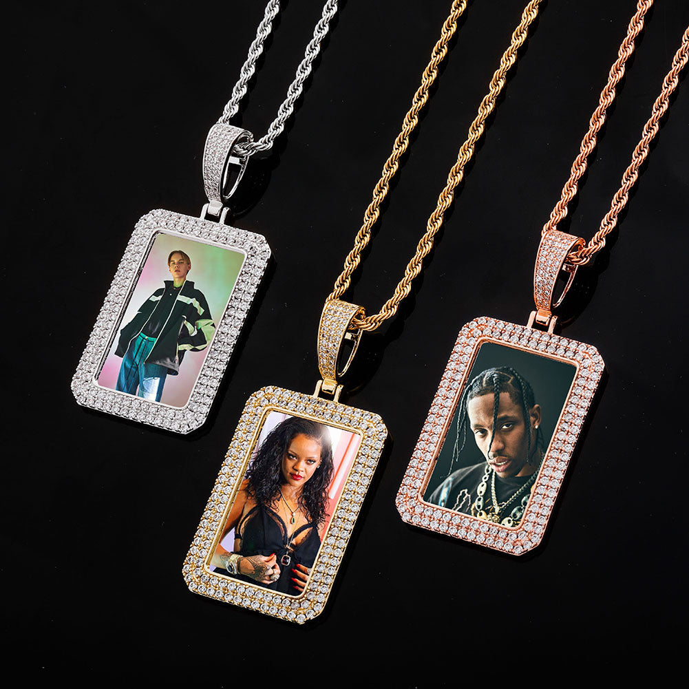 Wearsouvenir Photo Customized Double Row Diamond Square Frame Necklace