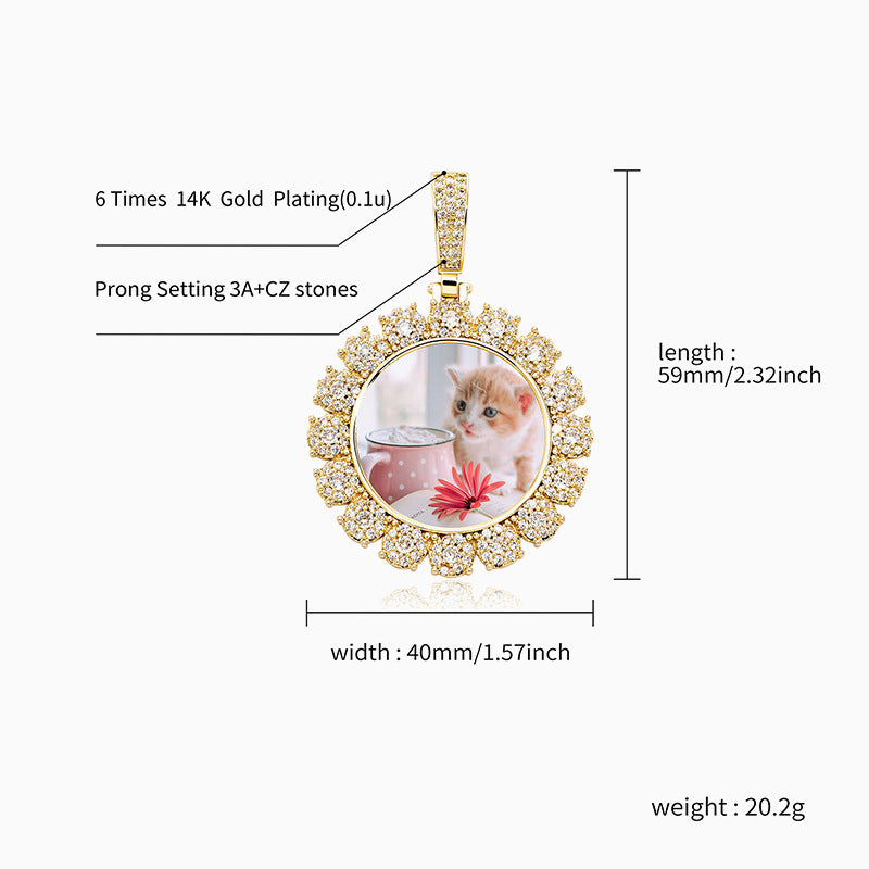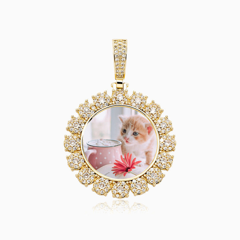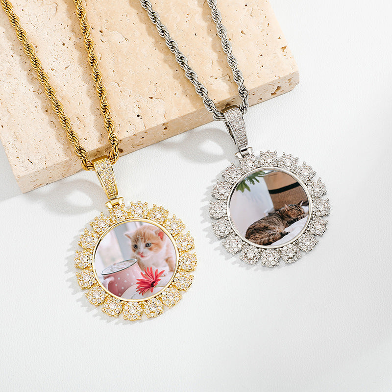Photo Customized Flower Shape Full Diamond Photo Frame Necklace