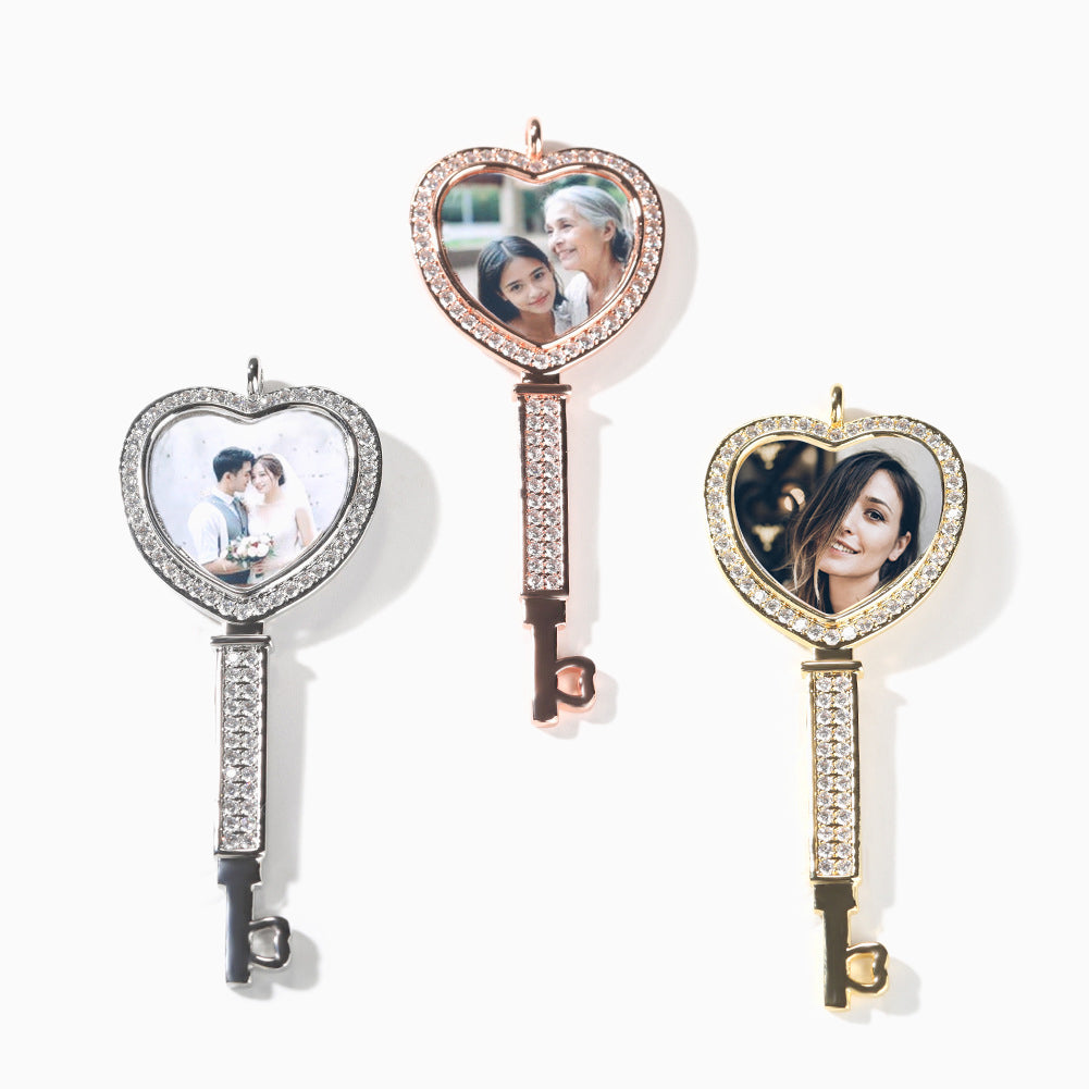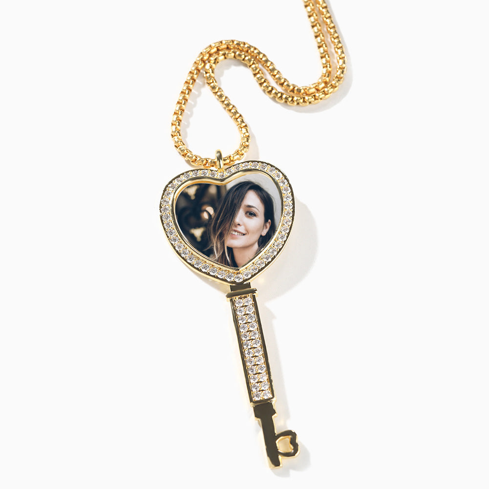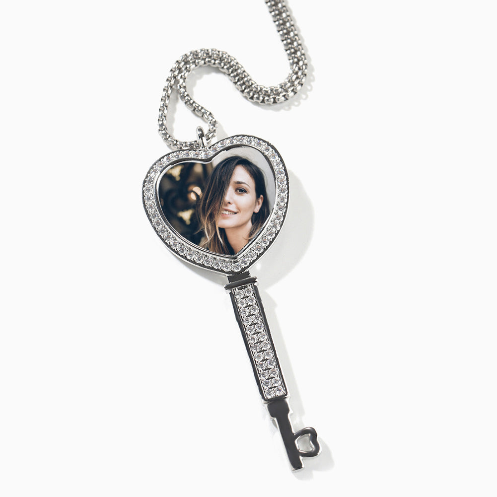 Wearsouvenir Photo Customized Heart Key Shape Diamond Necklace