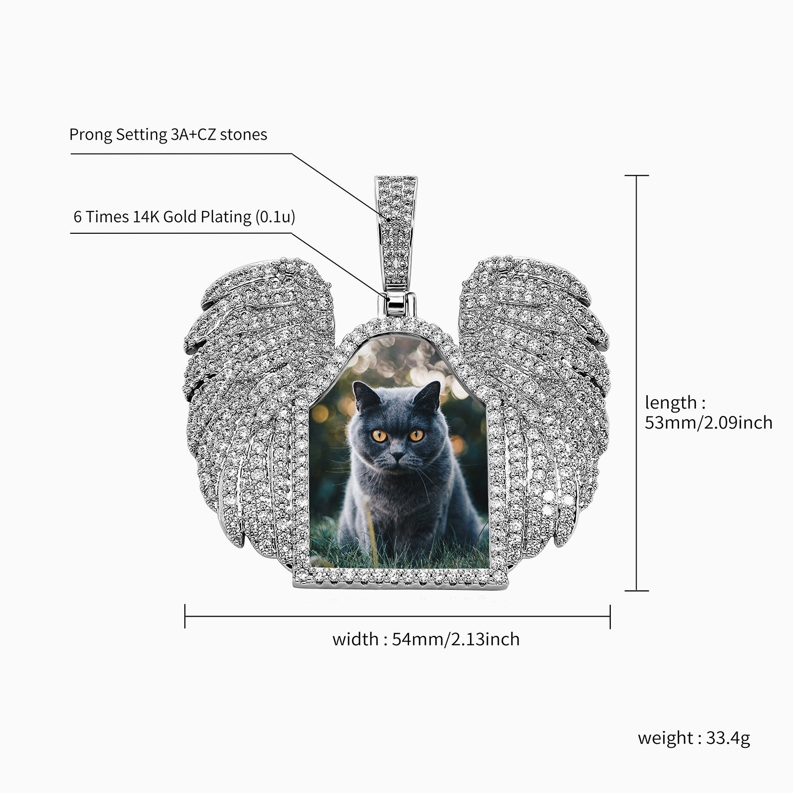 Wearsouvenir Photo Customized Large Angel Wings Full Diamond Frame Necklace