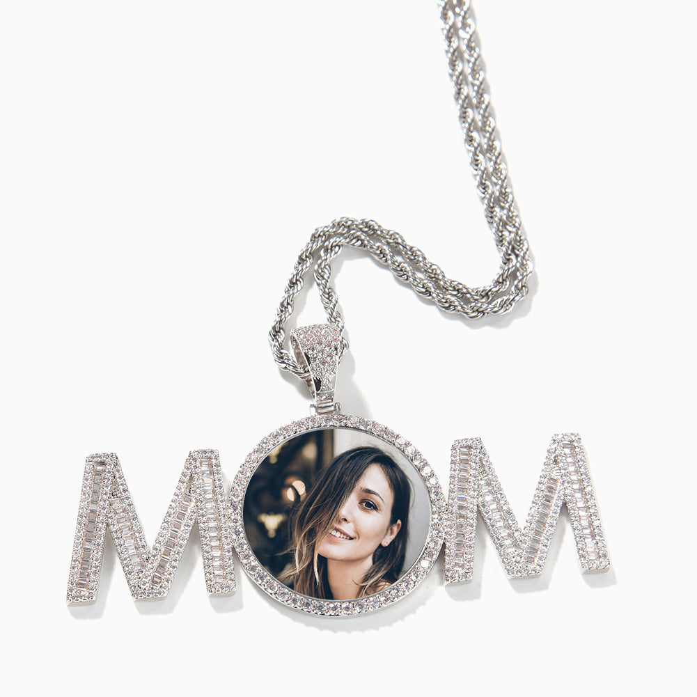 Photo Customized MOM Letter Stitching Round Necklace