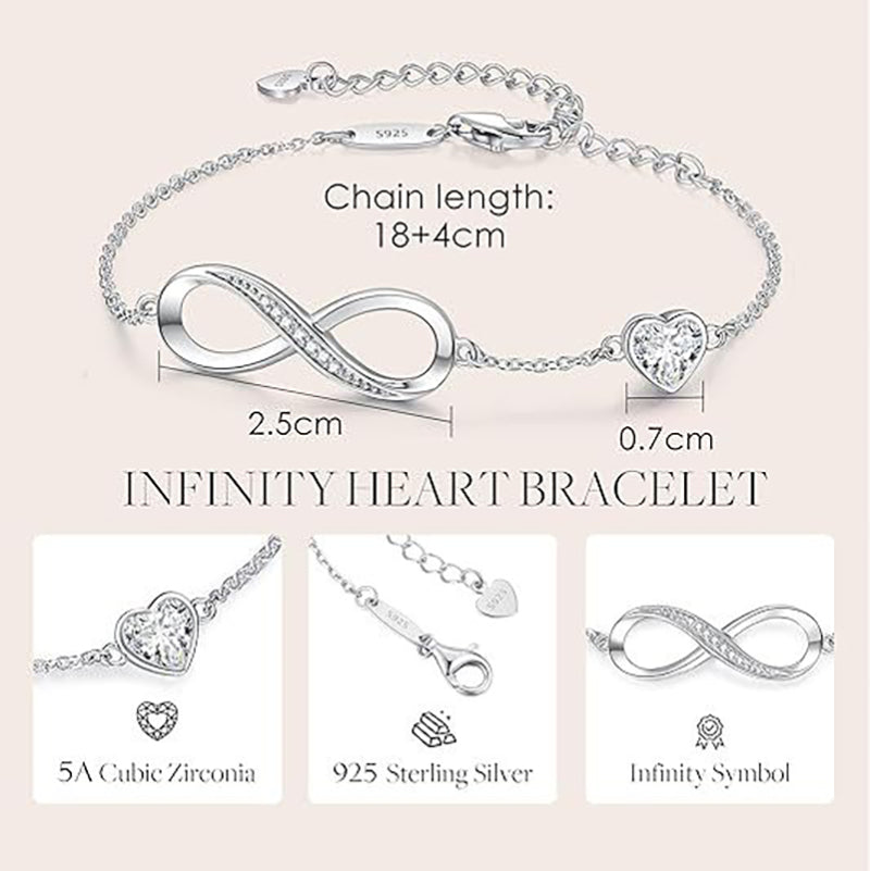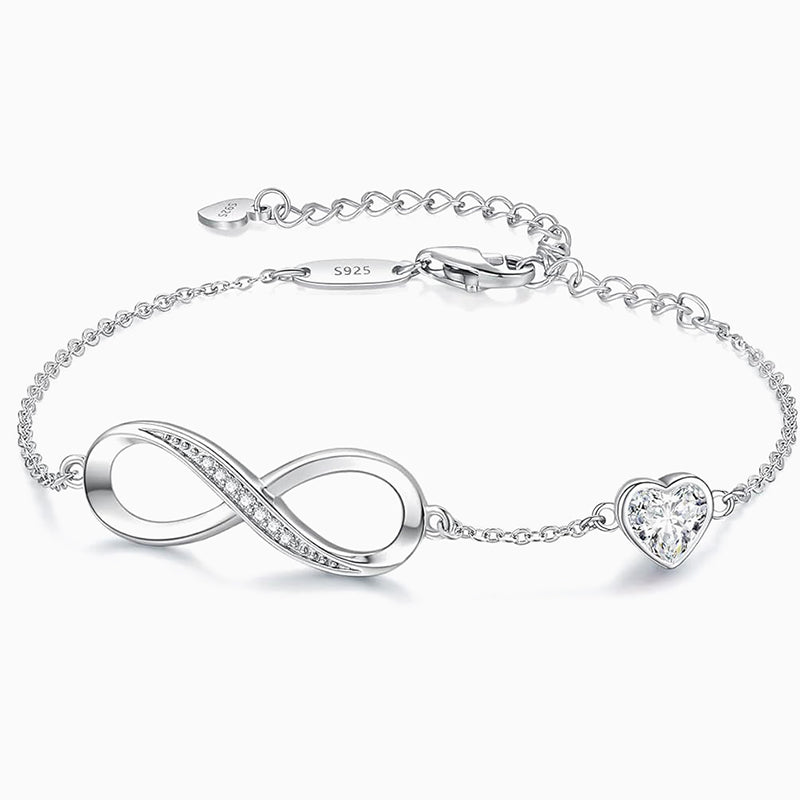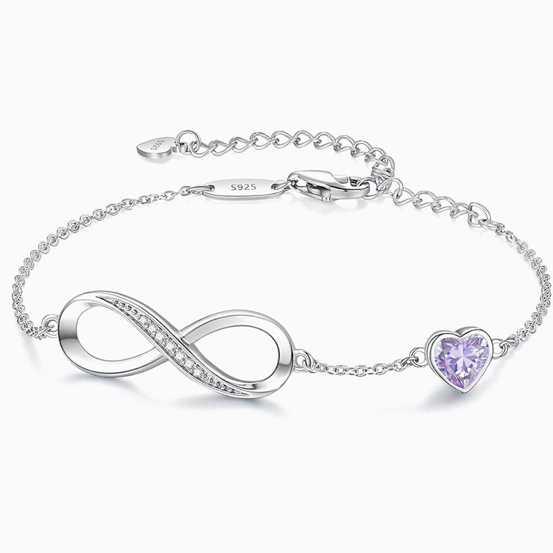 December Birthstone Infinity Heart Shaped Silver Bracelet